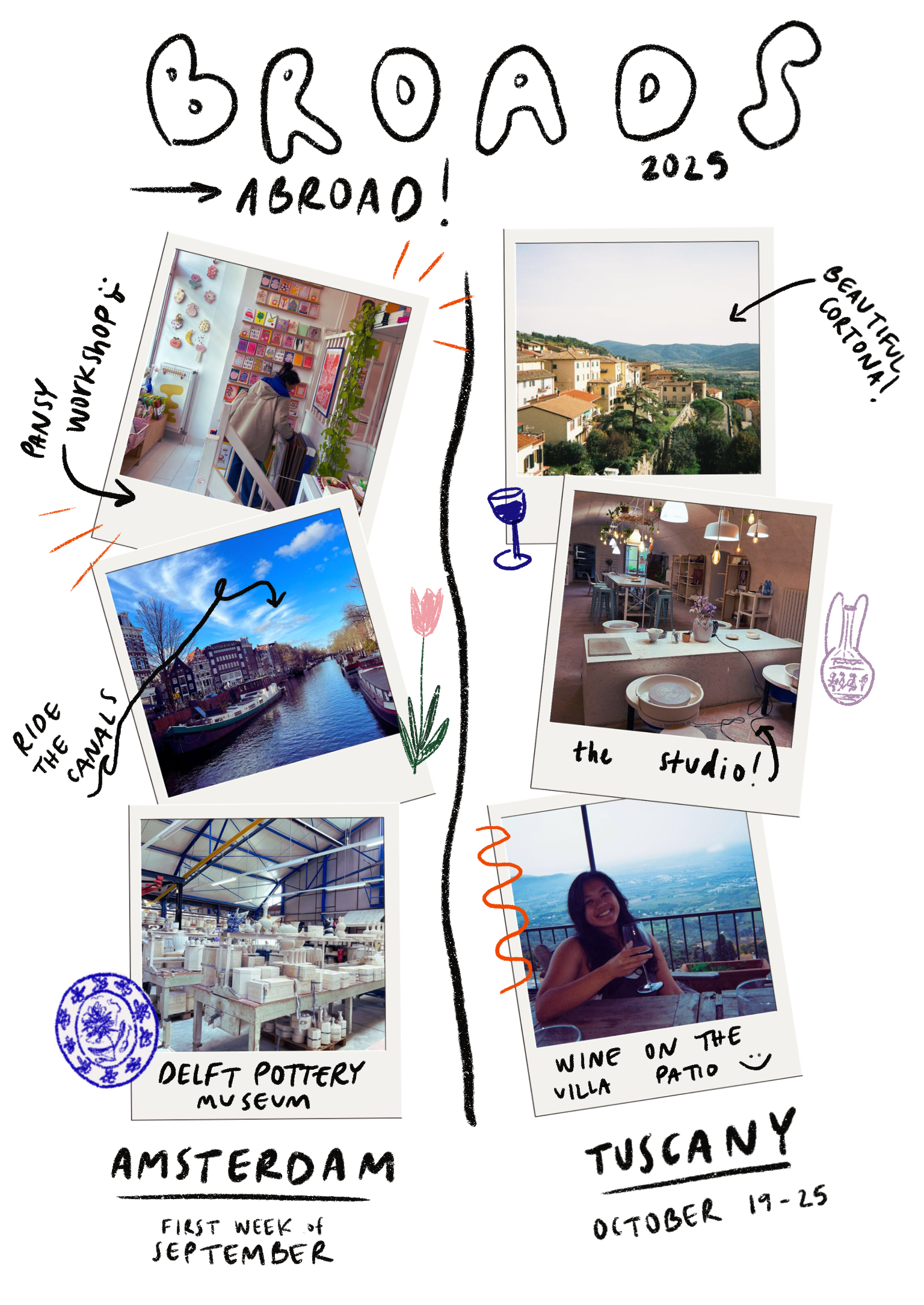 Broads Abroad is a travel-based learning experience designed for members of the Club House community and beyond. These immersive group trips bring ceramic artists together to explore pottery traditions and contemporary ceramics in cities around the world.