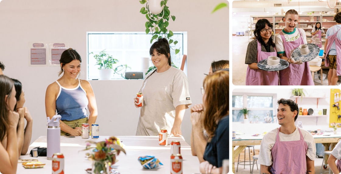 Private events are available for parties up to 15 for wheel throwing & 30 for hand building if taking place in our space. We also offer one drink per person: wine, beer, or seltzer (or you can BYOB).